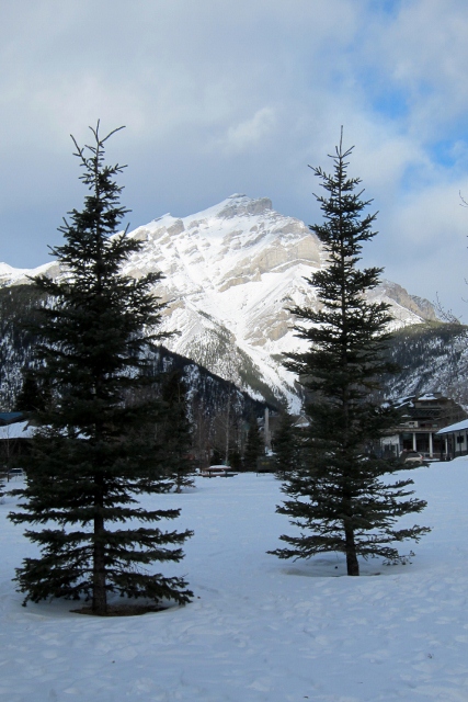 As I drive back to Banff I realize that the sun is already disappearing behind the mountains and it is only 1:30. During the winter, when the sun has such a low arc, it does not stay visible very long between the mountains. I manage to catch Cascade Mountain with sun on it.