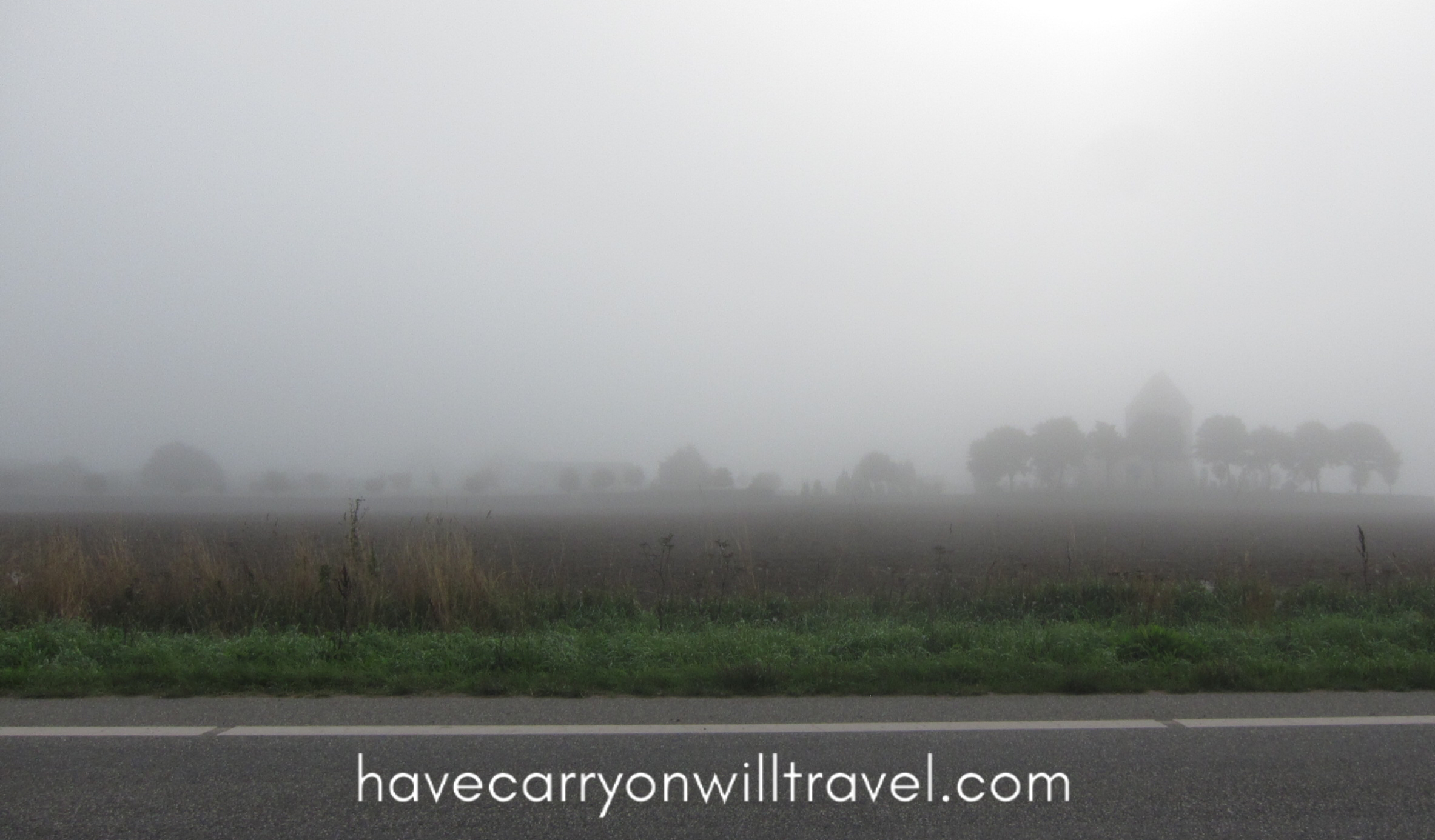 We start today’s ride in the fog. A fog so thick we cannot see more than a block away. Once out of Horsens, it almost feels like we are in a horror movie.