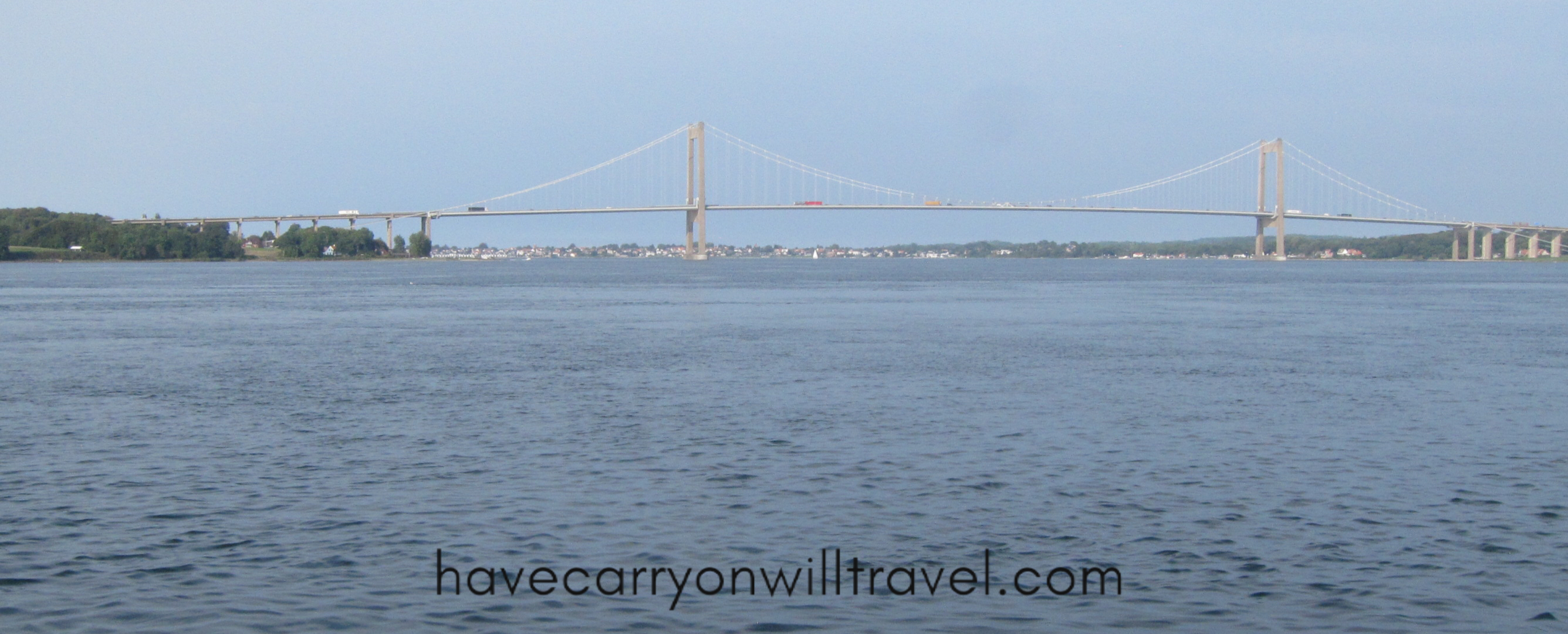 We ride the highway to Middelfart (mostly in a bike lane) and the terrain is still rolling and the ups are long and the downs are fast. We reach Middelfart and fate has one more long steep climb waiting for us, which we spin slowly up. Well, to be truthfull, I spin slowly up it going about 7 kph, whereas Murray does a much better job and has to wait for me at the top.
