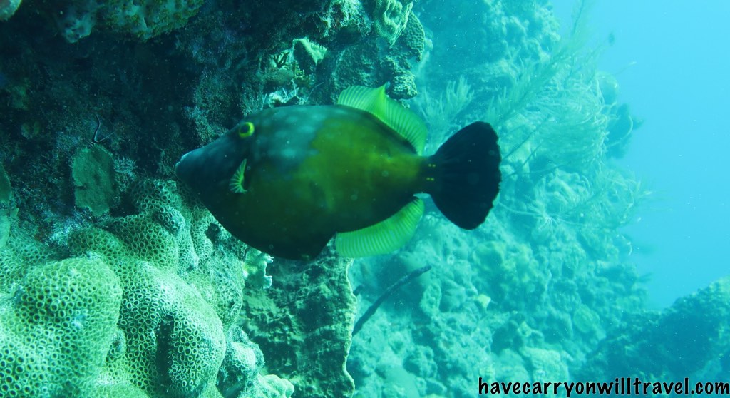 Today we dive again. Mid island this time. The dive shop is different and the routine is different. Arrive at 8.15, early for us and as soon as we are ready the boat leaves. Short ride.