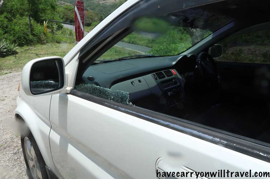 Our good day of diving was finished off by a smashed in car window. The parking lot for the dive shop is somewhat secluded from the road and a nefarious sort thought he/she could find a few bucks by breaking into a tourist’s rental car. Fortunately we left nothing in the car and so the thief drove off with empty hands. The police came by, we got a loaner rental car while ours is being fixed so all is good so far. Oh, just so everyone knows, apparently things like that do not happen here. The owner of the Tamarind Tree Hotel was shocked to find out our car was broken into.