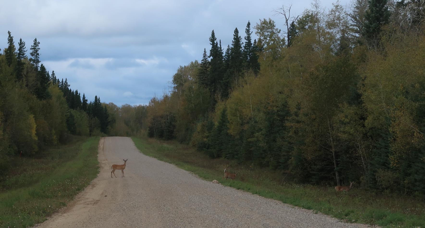 Murray and I were surprised at the quantity of wildlife that we encountered. Numerous deer, two of which darted in front of our moving vehicle on the main gravel road through the park. The second one, stopped in the opposite ditch and looked back to say, “HAH, made it! Take THAT!” Two bear cubs also crossed the road in front of us and then hid in the bushes to check us out checking them out. A shy coyote also on the move. A bald eagle gliding in circles, searching for lunch.