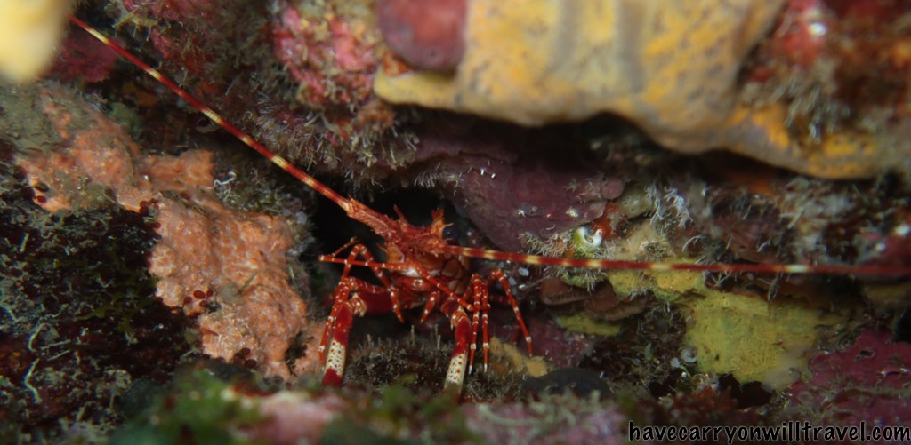 The diving is great again. The reef in the marine park is in excellent condition. The fish are plentiful and varied. We even find a lobster we haven’t met before.