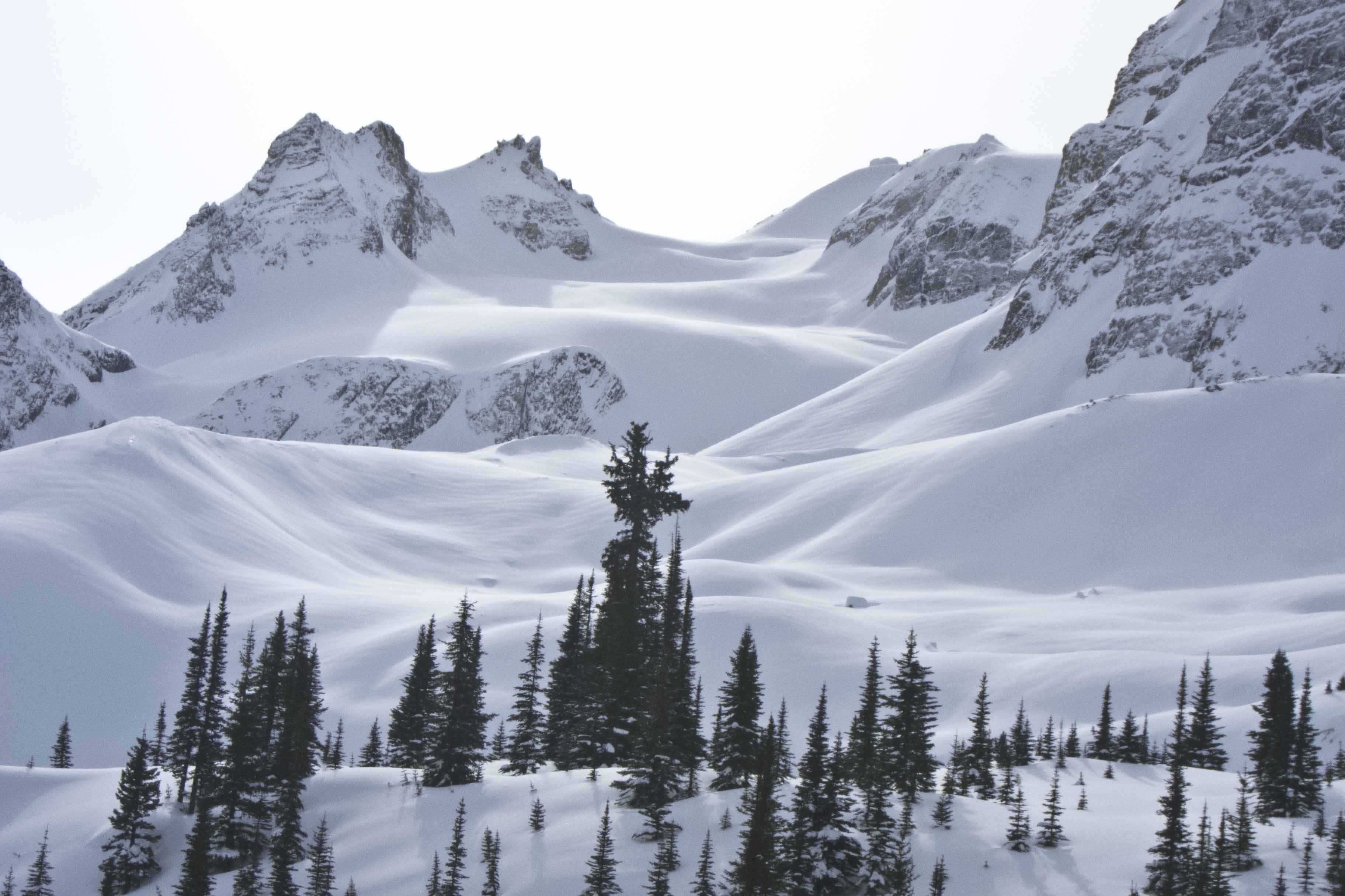 The weather is almost perfect. The wind is a bit up but the temp is just below zero. The sun peaks out only once in a while but the vision is quite good. There are only a four of us that are Mistaya vets so I got to pick the spot and it is off the Whaleback.