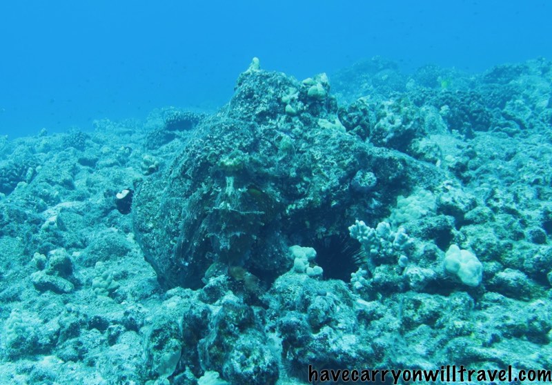 The one above is very well camouflaged and blends into the rock nicely. He also ventured out, even with four, camera wielding, divers laying in a semi circle around him. My picture does not do his colouring justice, whereas Murray’s video shows his wonderful colouring. He is most likely studying us just as we were studying him, or maybe he is just thinking about breakfast.