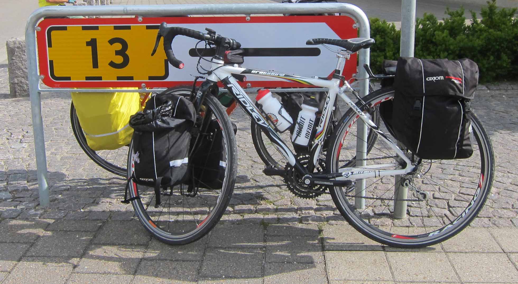 We tried to keep the weight in my panniers between 20 and 25 pounds. The weight was distributed between the 4 panniers with the front having about 4 pounds each and the back each had about 8 pounds. The one thing we did that saved time when we got to Copenhagen was to make a list of exactly what goes in each pannier. In Copenhagen, I was able to lay out all the panniers and stuff very quickly using the list. Here is what my list looked liked.