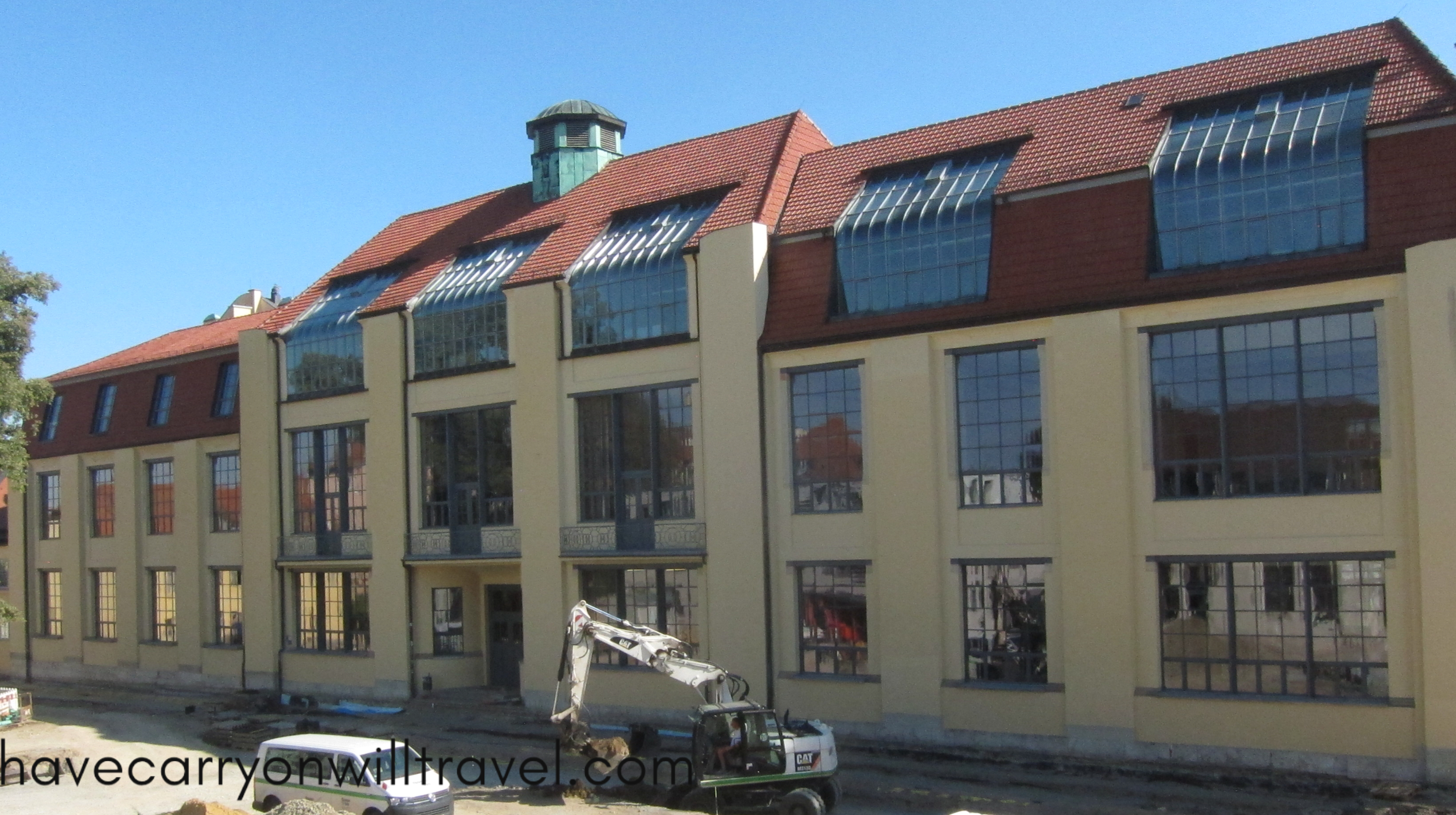 The best part of the day is touring the Bauhaus University. The tour is totally in German, so we don’t get much out of the words, but we get into some places that we would not have gotten into on our own. We enter the Director’s Office, which was put together for the 1923 exhibition of the Bauhaus work. Each department was responsible for creating some part of the finished project, the furniture, carpets, wall decorations, lighting.