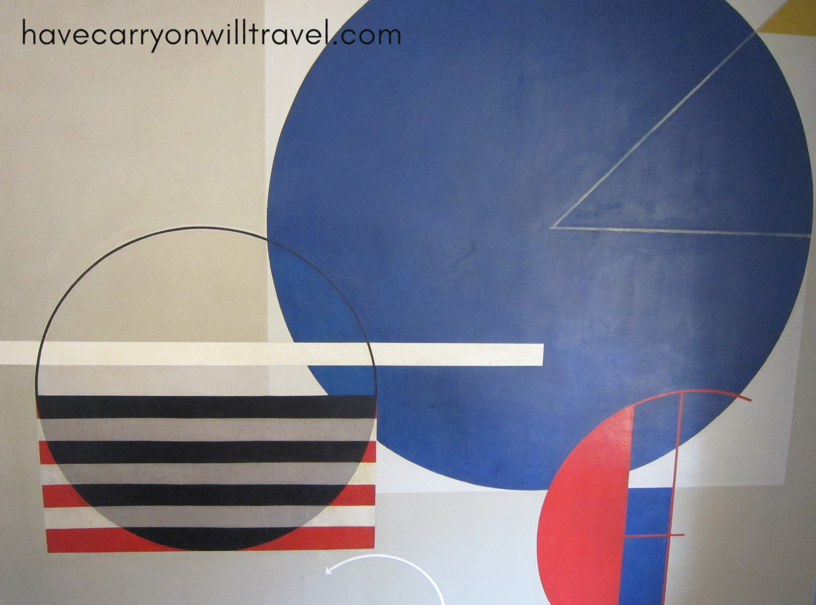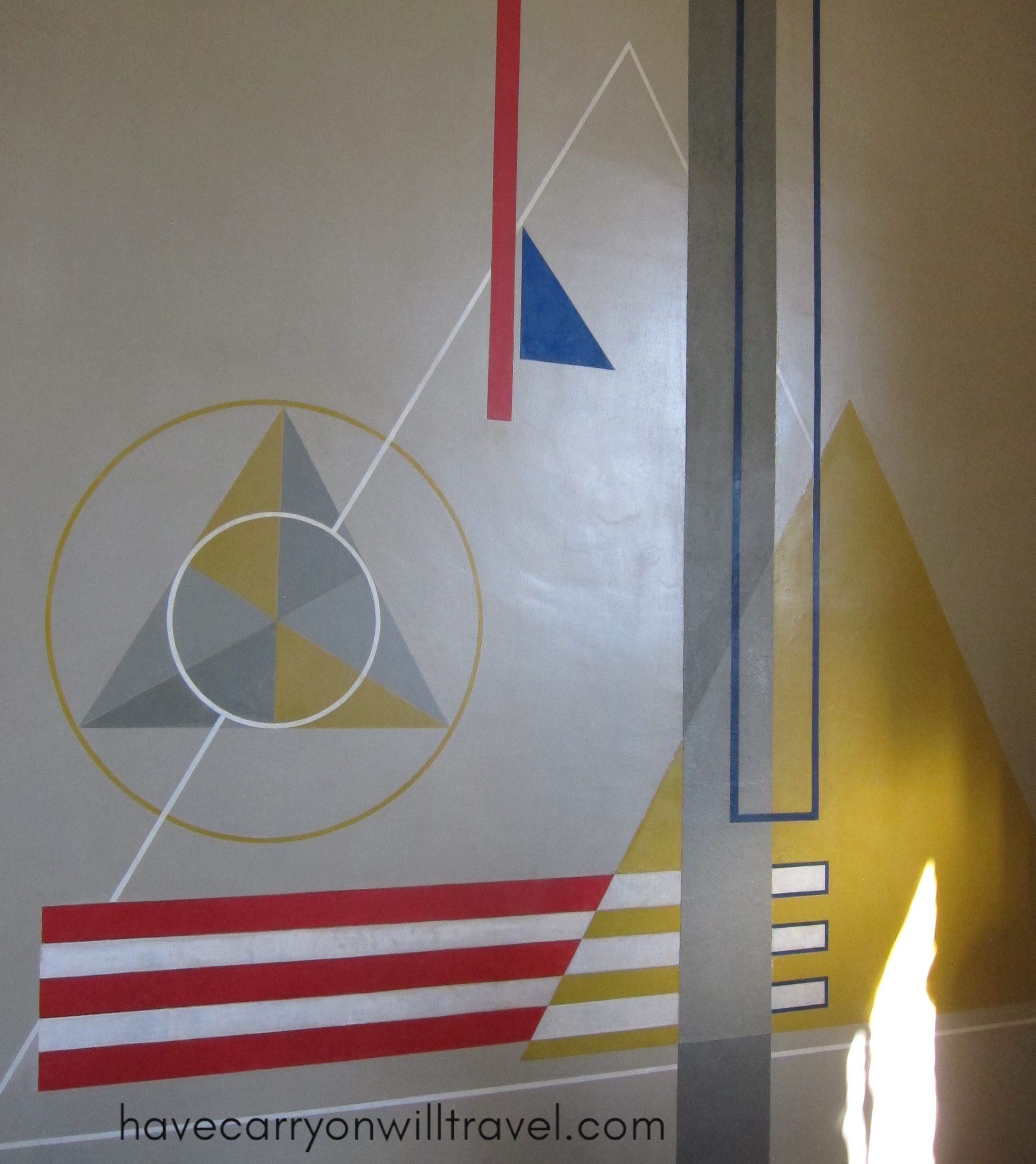 We also see the art work in one of the stair wells done by a Bauhaus student (Herbert Bayer) that follows the colours of Kandinsky done for the same exhibition. There is a blue circle motif on the first floor, red square on the second and a yellow triangle on the third. It was very exciting to see these early Bauhaus creations.