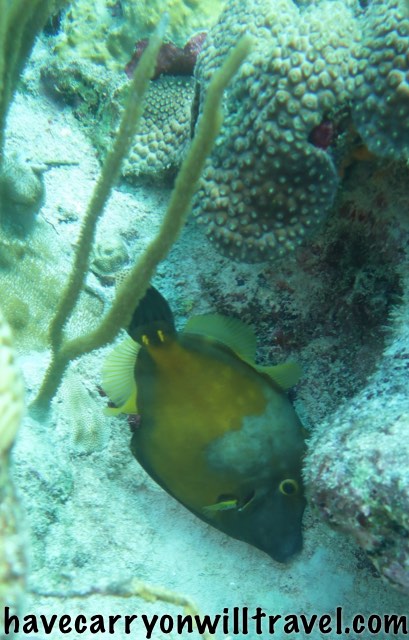 Today we dive Margate Bay. There are a couple of other divers doing the same dive, and underwater they are traveling at about the same speed we are. This is the first time we have encountered other divers who are not seeming to race through dive sites. After the dive we head to Cactus Blue, our favourite food truck, for a hamburger. I notice this other couple there, the ones who were diving Margate. I approach them and explain that it is nice to find other divers who dive slow. When I ask where they are from, they say “Edmonton, Alberta, Canada”. I laugh and when M and L ask where we are from, I say “Edmonton!” We share stories while eating the best truck hamburgers on Bonaire. It is indeed a small world!