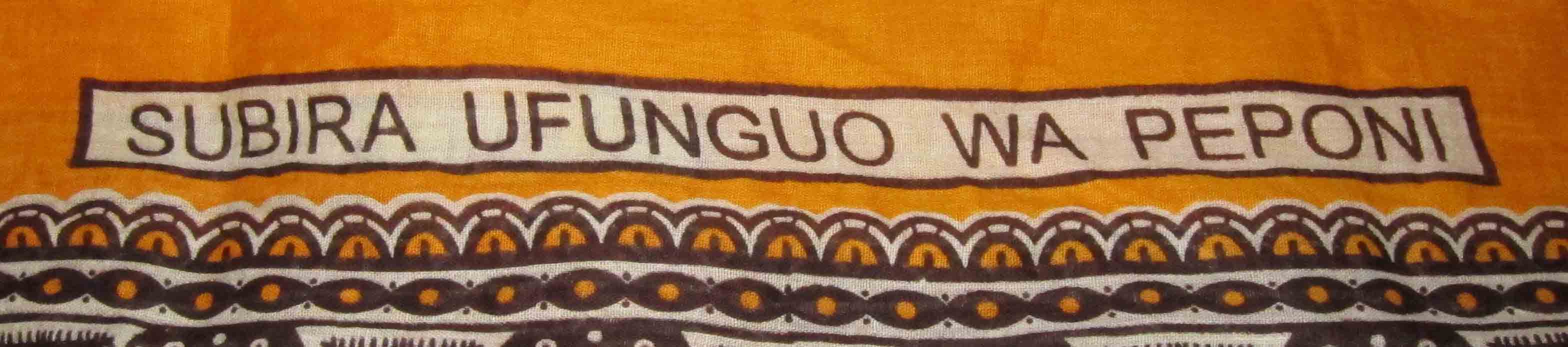 I buy a kanga pair in Stonetown from a vendor selling to local women. Murray bargains him down to 4,500 Tsh, which is about $3 Cdn. The “pair” is two imprinted kangas on one piece of material, definitely cotton this time, and some cutting is required to separate them.