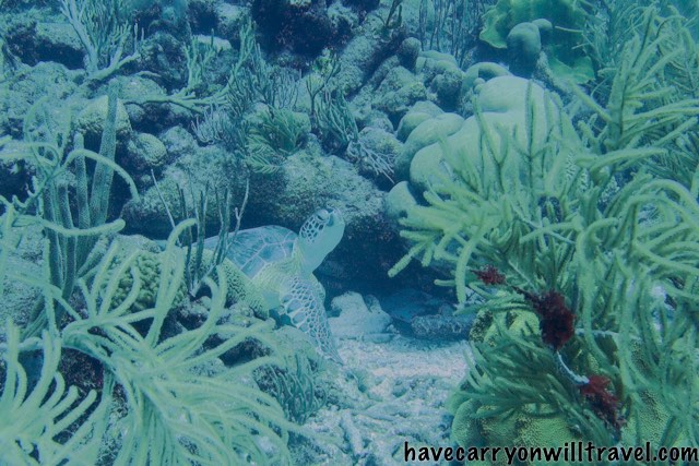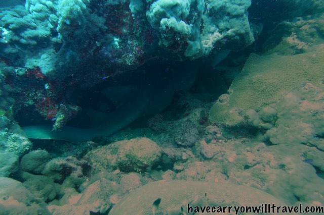 The next dive was on turtle heaven. 40 turtles is a conservative number. Kick, kick….. turtle, kick, kick….turtle. Could have gotten boring if turtles were not such elegant swimmers and able to mesmerize you with their fluid motion. And of course with that many turtles one is bound to have a close encounter or two. Debbie managed to get a turtle nose as one of her photos. They were not that bothered by divers, even though they have seen far fewer than the turtles on the west side.