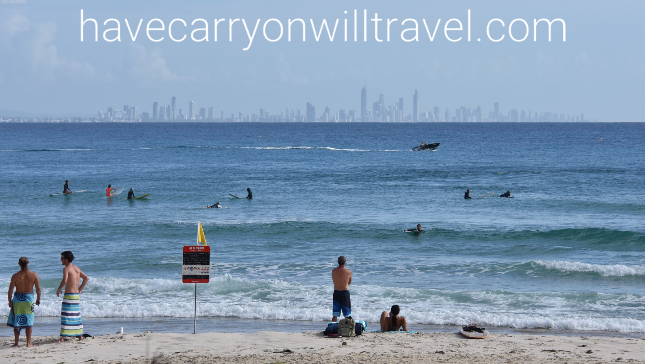 The beach along this coast is about 30 km long in a huge arc, but it only becomes reality when I can look across the water and see the towers at Surfers Paradise projecting into the sky.