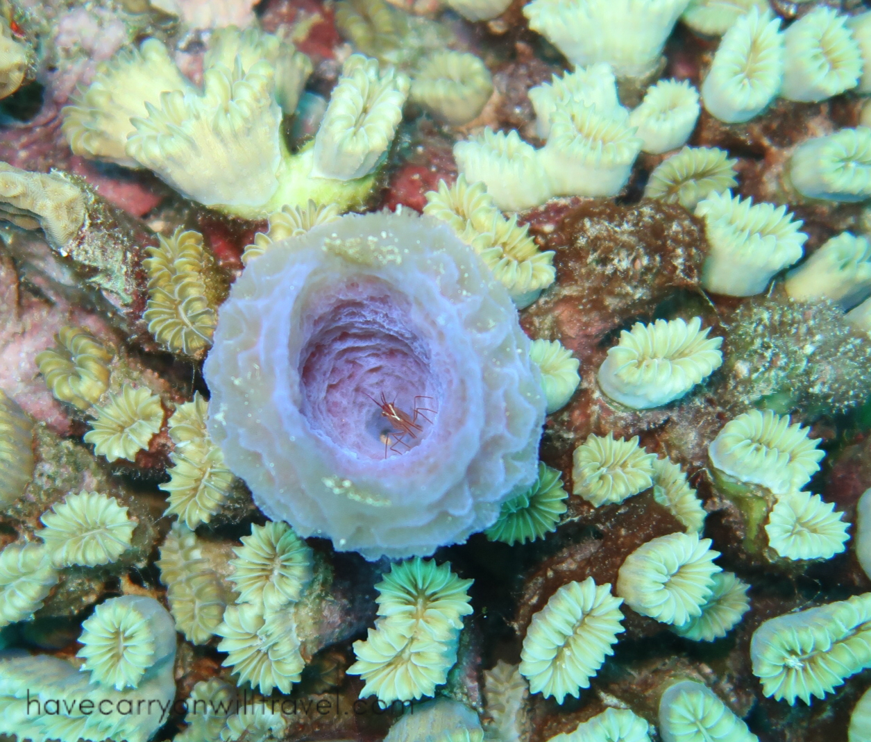 The dive sites themselves are quite pretty. The first is a field of soft coral bent over from the current and so thick it is hard to swim near the surface of the reef. The second has a mix of soft and hard coral making for quite a surreal landscape. The third is almost exclusively hard coral looking like a boulder strewn slope in the mountains.